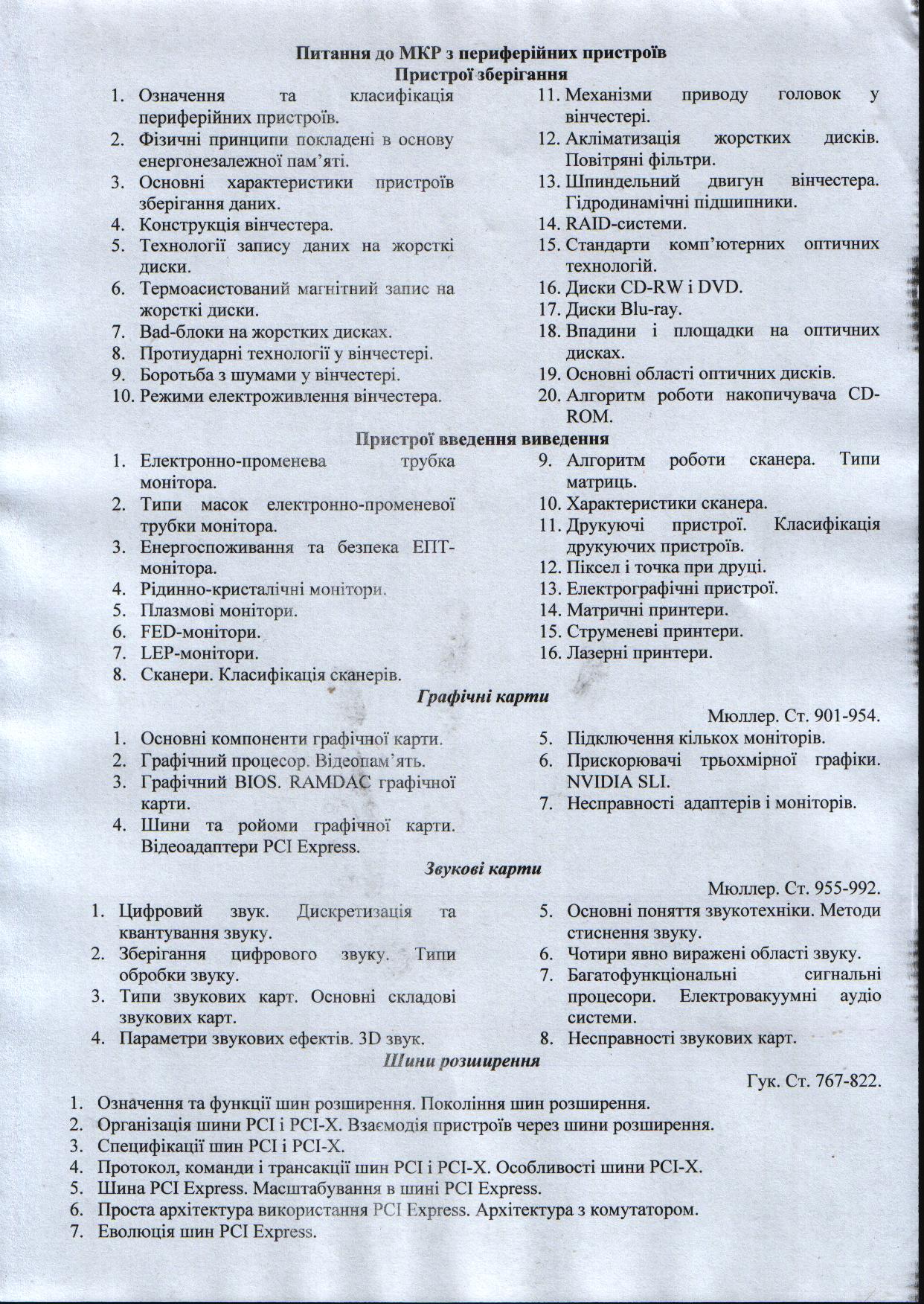 Перефирійні присторої. Питання до модуля |